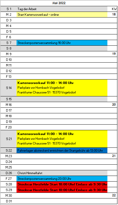 Anmelden vor Ort und Fahrerlagerabstecken am 22.05.2022 ab 13:00 Uhr